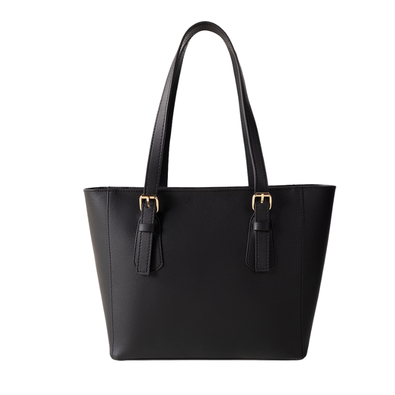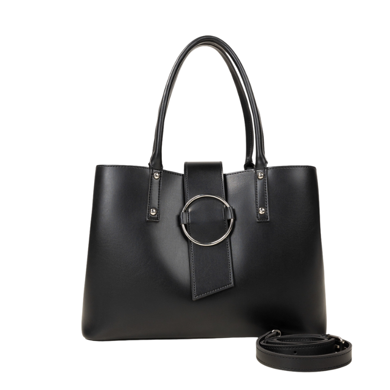 Black PU Leather Handbag with Buckle Detail – Women’s Tote Bag